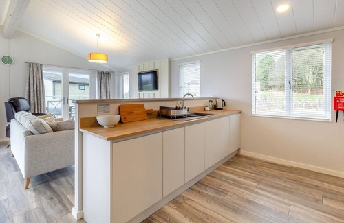 A stunning lodge that has been designed for disabled use but is open to everyone. Cherry Lodge has a master king-size bedroom and a twin bedroom which both share a family bathroom. There is a further accessible room with a profiling bed with or without padding and has wider door frames, an additional pull-out bed, and an adjoining wet room with an electric W.C support handrails, and shower seat. The open plan lounge boasts comfortable seating for everyone, a riser recliner chair, a Smart TV with Freeview and views onto the deck and beautiful countryside beyond. Cherry Lodge also has a modern open plan kitchen and dining room, perfect for sharing family meals. The deck also features a sunken hot tub to help with accessibility. The perfect base for a family holiday. No pets.. Haystax Holiday Lodges is part of our exclusive Evermore collection, each lodge has been carefully put together to allow everyone with all abilities to enjoy a memorable holiday within the peaceful Durham countryside.