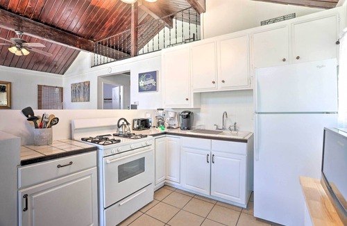 When the mountains call, this Crestline cabin answers! This vacation rental boasts 2 beds, 1 bath, a cozy living area, and a wraparound deck — perfect for family BBQs or kicking back with a cocktail and enjoying the views. When you’re ready to explore, visit Silverwood Lake State Recreation Area for a fun day of hiking, cast a line at Lake Arrowhead, or shred the slopes at Snow Valley Mountain Resort in the winter!