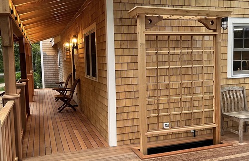 This home is beautiful yet not fussy, furnished with both elegance and comfort in mind, with well thought out amenities, including but not limited to a wonderful new kitchen completed in 2022. This fully equipped "Cooks" kitchen includes a large table that seats 8-10. The deck is appointed with teak furnishings , a large direct line gas grill and wonderful views of the beautiful Vineyard sunsets. Along with the kitchen a new full house A/C systems been installed. Our guests rave about the large outdoor shower. Inside the main house is an open concept living room with cathedral ceilings and the loft area above has a T. V. which is great for hanging out but also can be used as an extra space for house guests on the pull out futon.