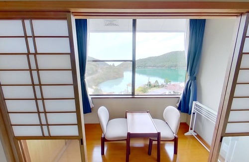 As a general rule we do not accept preschool children There are steep stairs and steps that can be dangerous for small children This is due to the nature of the facility which has a workspace attached and the structure of the facility which makes it easy for sound to echo We appreciate your understanding / This is a 10mat Japanesestyle room with a lake view overlooking Oshidori Pond through a large window Completely private the room has its own shower booth toilet and washbasin