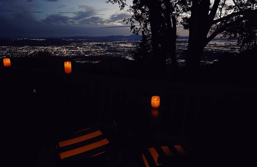 The patio is a great place to watch the sunset or sunrise or enjoy the evening air under the hue of the string lights. A great place to unwind and tap into the peace, tranquility, and serenity of the property. No words or photos give the breathtaking view justice. It truly is awe-inspiring whether during the day or into the evening looking at the city's twinkling lights below. The view is constantly changing with the different light and wildlife shows.