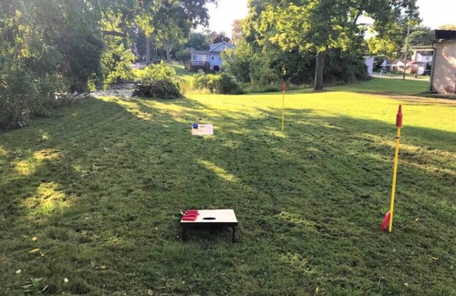 • Backyard with some games like Cornhole to enjoy on a nice night.
