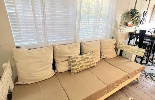 This beautiful condo has been uniquely decorated and furnished with custom, hand made furniture. Packed full of character, style, functionality and comfort, this is the perfect space for long, mid or short term stays. Centrally located in the LGBTQ friendly, Hillcrest neighborhood. This will be and amazing home base for your vacation or work trip. Surrounded by plenty of light, typically a comfortable slight breeze and loads of plants you won’t find a better place to stay in San Diego. Parking on site included.