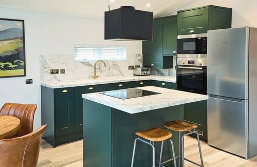 This delightful two-bedroom lodge nestled in the hills of the Welsh countryside and all the comforts of home, making it an ideal spot for a tranquil family getaway. The open-plan living, dining, and kitchen area is bright and airy, featuring floor-to-ceiling windows, comfortable seating, and a kitchen area with a handy breakfast bar. The master bedroom boasts a lovely en suite shower room, while the second bedroom is configured as a twin room. In the warmer months, you can relish your morning coffee or have a delightful al fresco dining experience on the decking area, enjoying the spectacular surroundings.
