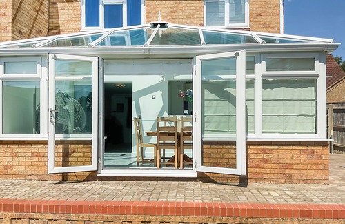 Bathroom: Bath With Shower Over, Heated Towel Rail, Toilet. Gas central heating, electricity, bed linen, towels and Wi-Fi included. Welcome pack. Back garden with sitting-out area and garden furniture. Private parking for 2 cars. No smoking. Please note: There are 5 steps in the garden. Sorry, no children under 8 years old.. This charming two-bedroom modern holiday let in Verwood, Dorset, offers a perfect blend of comfort and style. Featuring an open-plan living area including kitchen and conservatory, the space feels airy and inviting. Large windows bring in natural light, while the conservatory offers a tranquil space to relax. The fully equipped kitchen allows for easy self-catering and both double bedrooms include large built-in wardrobes.