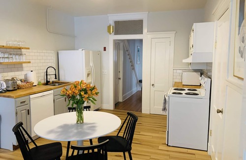 Charming turn of the century multi family apartment building. Newly renovated one bedroom ground floor apartment with bunk room. The apartment can comfortably sleep 5. Including fully equipped eat in kitchen with washer and dryer and spacious living room. Beautifully furnished with modern day decor and fine art. All the comforts of home. Conveniently located within 15 minute walking distance to Great Barrington center and 5 minute walk to Guidos Market and Big Y plaza. A quick drive to many of the Berkshires finest attractions. Come enjoy the Berkshires!