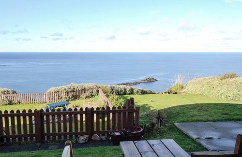 Bedroom 3: Futon (Single). Electric central heating, electricity, bed linen, towels and Wi-Fi included. Logs for wood burner available locally. Travel cot and highchair. External utility room with washing machine and tumble dryer. . Enclosed lawned garden with garden furnitue and BBQ. Private parking for 1 car. No smoking. Please note: Couples and family bookings only.. This lovely terraced cottage is in a superb elevated position in the village of Gardenstown with beautiful uninterrupted views from the open plan living space over the sea below and beyond. This is a very comfortable, bright property, combining stylish contemporary furnishings with sublime views. French doors from the living area allow access to the enclosed garden to the rear, which makes a wonderful place to relax and experience one of the stunning sunsets with the sea below. Ideal at any time of the year, it is just a short walk to the local shops. It is possible to walk to the neighbouring village of Crovie. Superb wildlife watching and other activities can be enjoyed in the vicinity. Organised boat trips are available from the harbour where you may catch a glimpse of the dolphins that often swim in the bay. Beach 350 yards downhill. Shop 250 yards, pub and restaurant 300 yards.