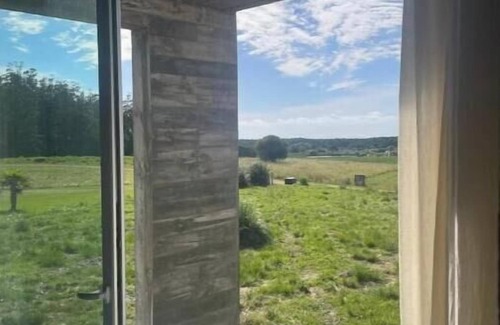 Modern exposed concrete house, lapacho liners, 3m high double glass windows in Tajamares de la Pedrera, Rocha, Uruguay, with panoramic views of the sea and eucaliptos forest. Three en-suite bedrooms, open kitchen, laundry room, air conditioning cold/heat in all environments, and a double glass wood-fired home in the living room. Outside, equipped galleries, swimming pool of 12 x 3 meters and a grillero with a mud oven.