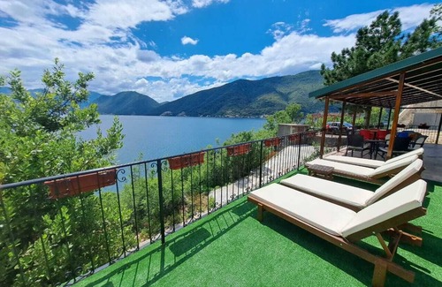 Waterfront Seaside Traditional house with a platform jetty Beach. Breath-taking panoramic Sea Views Over Kotor Bay Fjord and The Islands of Perast.