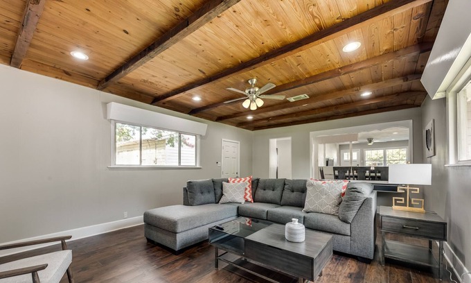 In the heart of Arlingtons entertainment district. This home is perfect for the family or group get togethers or game weekends! Sleeps 8 people in 4 bedrooms. WALKING DISTANCE to AT&T Stadium, Rangers Ballpark, and Texas LIVE! . Relax in the the 2 living rooms with two 55' inch TV, or bring your competitive side in the game area with foosball, and shuffleboard. Modern amenities: high-speed WiFi, washer and dryer and SMART TV's and More!