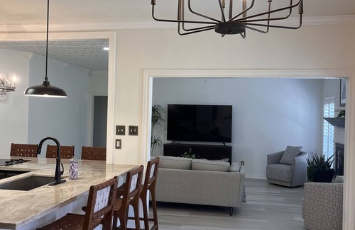 Welcome home to your home away from home. Come stay in this 4 bedroom 3 bath modern Ranchette home only 3 miles to Kyle Field & Texas A&M. This newly remodeled darling farm house sleeps 20 and has built in entertainment. If you are in town for Fire training or a game day you will sure to have selected the perfect convenient but private ranchette.