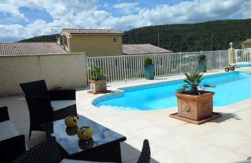 New 3 star rural Gite, prefecture, equipped with reverse cycle air conditioning in the main room, electrical heating system, located in the Ibie Valley, just outside a hamlet with a quaint architecture, 9 x 4 traditional construction pool, BIO UV processing, secured with fences and et gates comply with the security standards, playground, petanque field, two bicycles per Gite, swimming available 3 km away, in a river, starting points for walking paths, many villages to visit, the Gorges of Ardeche are 13 km away, canoes, caves, the Grotte Chauvet museum,