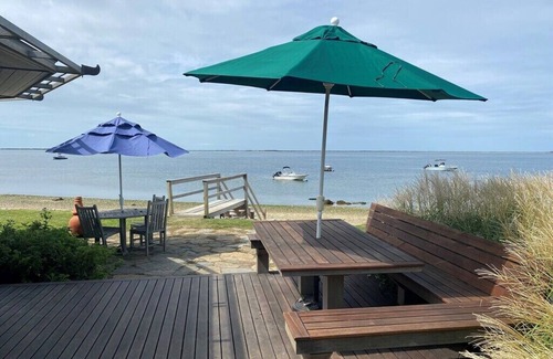 New harborfront listing in Pocomo! Experience the invigoration of being practically on the water in this unique, 12-sided home. This 2-bed, 1-bath cottage sleeps 8 and is just steps from your own private beach on Head of Harbor or a short drive to Great Point, Pocomo, Coatue, and other famous Nantucket beaches. Enjoy jaw-dropping sunrise to sunset views in all directions through the plentiful panoramic windows, or take in the salt air on the outdoor patio by the fire. Don't miss this beach-house getaway gem!