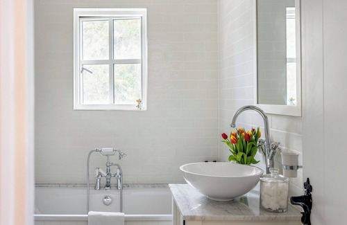The heart of the cottage is its spacious and fully equipped kitchen, complete with modern appliances and ample counter space. Gather around the dining table for delicious meals prepared with local ingredients. A breakfast nook offers a cosy spot for morning coffee and casual meals, enhancing the communal experience.