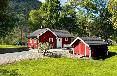 Welcome to this hidden gem by the fish-rich and beautiful Hardangerfjord, perfect for anyone seeking outdoor activities as well as silence and peace. The holiday home is comfortably furnished and has several large patios, where you can listen to the buzzing birdlife while you enjoy the day's catch. Gas grill and fire pit available. Kitchen equipped with everything you need for a successful holiday. One bedroom with a double bed with plenty of cupboard space and one bedroom with a double bed in the loft, please note that the second bedroom is only available by steep stairs/ladder. Bathroom with shower and WC. At the entrance, you will find a storage room with a laundry room. For rent 1.5.-1.10: 1 x 18 foot Hobby 528CC with 60 HP Yamaha, Garmin 7-inch chart plotter, GPS and sonar. The boat is on a buoy and floating jetty by the shore for boarding and disembarking. Filleting table with light and water in the garage (20 m from the cabin) and freezer. The owner is happy to inform you about good fishing spots on land. There is a filleting table with light and water in the garage as well as a large freezer capacity. With its 183 km, the Hardangerfjord is Norway's second longest fjord. In addition to surrounding mountains, the area by the Hardangerfjord offers some of Norway's most beautiful waterfalls. The area has long traditions in fruit growing and is wonderful in the spring when the fruit trees are in bloom. Great for hiking and outdoor activites.