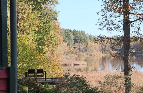 A pleasant and peaceful holiday home in a lovely forest area right next to a small lake. The cottage is located separately and beautifully embedded in the forest and with a view of the small Gårdsjön. Here you will experience the peace and quiet and the generous plot has everything you could wish for for all your family activities. A perfect accommodation for nature lovers and families with children. The older part of the cottage has a toilet. The kitchen is quite small but has all the equipment. The living room is spacious with a comfortable sofa and dining table. A wood-burning stove gives you pleasant warmth if the evenings are a bit chilly. There is a TV with chromecast, but no channels. The bedroom here has a double bed (140cm wide). From the living room is the exit to a spacious glazed conservatory. In a newer part of the cottage there is a large bright bedroom with two single beds and a fully tiled bathroom with shower. From the bedroom there is a large glass section with double doors. Here you wake up and fall asleep with a feeling of being in nature. From the front of the cottage you have a lovely view of the small lake. The plot is large and slightly hilly, but fenced with a fence and gate. Excellent for those on holiday with a dog. There is a very special little terrace with a lovely view of the lake. From the outside of the plot along the edge of the forest you have just a short walk to the small jetty where you can fish. The farm lake has both perch and pike. Fishing is free. There are several lovely walking paths in the forest around the cottage. The nature with its lakes is very beautiful and there is plenty of game in the rhythm, even moose are seen from time to time. Örkelljunga has everything you need in its pleasant town centre. A good selection of shops and restaurants. There are several golf courses in the area, the nearest is Wittsjö golf club. Örkelljunga also has one of the country's best mini golf courses. A few kilometres north, at Markaryd, is the moose park, a fantastic excursion destination for the whole family. On the other side of Hallandsåsen is Vallåsen ski resort in winter. Visit the Bjäre and Kulla peninsulas. Here you will find lots of nice excursion destinations and hidden gems. A short drive away is the beautiful town of Ängelholm with small, pleasant shops, the beautiful local park and its long beach.