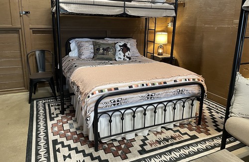 Enjoy a unique stay in our dual purpose lodging and horse barn on our working family farm and ranch spanning over 500 acres. This rustic yet cozy ranch bunkhouse offers a unique experience, blending modern amenities with the restful beauty of the countryside. Whether you’re a horse enthusiast , an RV traveler, or a group of family or friends looking for something uncommon the 4T Bunkhouse has something for everyone. Located close to the Waco area, our Bunkhouse offers easy access to the city attractions and a retreat back to the peacefulness of our rural location.