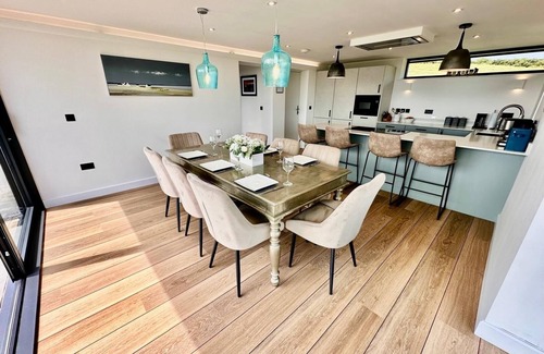 Property Details: The property has everything you need for a perfect break. It is fully equipped for 8 people + baby. We have spent many weeks as a family on holiday in the UK and have made every effort to make this a welcoming and high quality cottage for every age to enjoy. Special features include the inglenook fireplace, A large Smart TV, DVD player, Bluetooth tower speaker plus second LCD freeview TV upstairs. Free wi if is also provided. Large sofa, and log burner. Beautiful oak staircase to character crog loft. Spacious quality brand new kitchen extension with luxury additions including granite worktops, large range 2 ovens and integrated appliances and a large up-market dining table-and chairs for 8 guests. The kitchen has a breakfast bar and 4 bar stools for informal sociable dining whilst appreciating the stunning surrounding views. Beds are made up with good quality linen, duvets, and white towels are provided. Only need to bring beach towels. A washing machine and dryer are provided and also outside drying