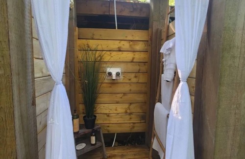 Each luxury glamping tent is in a beautiful location tucked right under the trees. We are blessed to have a massive eagle's nest located on the property. You will be able to view them and hear them sing several times a day, from the luxury of your tent. The bell tent can be arranged in several ways.
