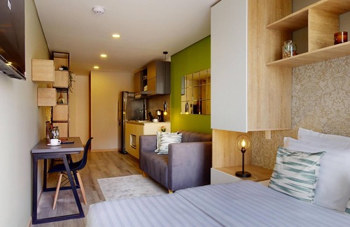 The kitchen is equipped with an oven and a refrigerator, as well as a microwave, cookware, and a blender. Enjoy the WiFi and TV. Bathroom amenities include towels, toilet paper, and soap. And because there's access to laundry facilities, you can go a bit lighter on your packing. Other amenities at this 1-bedroom, 1-bathroom rental include bed sheets, a desk, housekeeping, and change of towels on request.