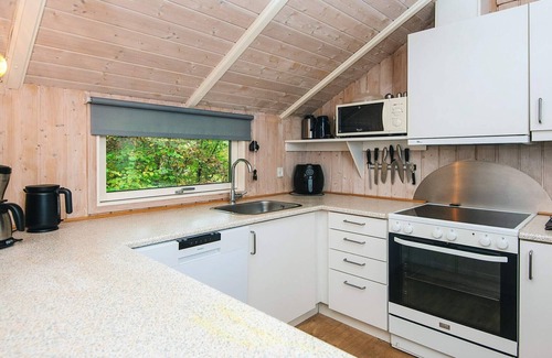 This well-maintained holiday home with a 2-seater hot tub is located by Kvie Lake on a 1080 m2 natural plot with trees. The holiday home has been continuously renovated and is now a cosy and bright house. There are three bedrooms, one with a double bed, one with two single beds and one with a bunk bed. The bathroom has a 2-seater spa bath, walk-in shower and underfloor heating. There is a washing machine. Large and spacious kitchen equipped with stove with ceramic hob, oven, dishwasher, microwave, extractor hood and fridge/freezer. There is a bright, combined living/dining room with direct access to the house's covered/open terrace furnished with good Danish furniture. There is a wood-burning stove, TV, air/air heat pump and internet. On the grounds there is a cosy corner with a table/bench set and a stone-built barbecue. The house is located on a natural plot with trees bordering open nature. The house is registered for swimming/playing/bowling.A refundable deposit might be charged closer to your check-in date. The security deposit ensures a smooth stay and covers any additional services or consumption charges.This deposit covers utilities consumed during your stay and any additional services that may be taken.The final amount will be adjusted based on actual meter readings, actual usage of extra services, and any remaining balance will be refunded within 21 days after checkout.This deposit simply acts as a prepayment for charges that you would anyways pay for, ensuring a seamless stay and check-out experience.