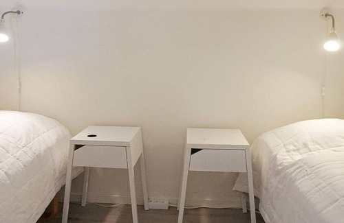 Welcome to this very fresh apartment with a sea view, here you can enjoy the sun, swimming and all kinds of boats that pass on the sea outside. This office apartment located in a partially industrial area has an excellent location for those who want to live near salty baths and the center of Kungshamn. Feel free to take a walk around all of Kungshamn's piers and boathouses, perhaps a fishing boat has come ashore with today's catch that you can buy and enjoy. On lovely summer evenings, it is a given to sit on the balcony and enjoy the delicacies of the sea, such as fresh prawns, crayfish or a well-stuffed crab. The apartment is also perfect for those of you who want to discover the sea on your own, it is fine to bring your own kayak. From the ground floor you take the stairs up to the second floor where you choose the entrance door on the far right, once inside you are met by a small hall and a staircase that leads up to the apartment on the third floor. The apartment has large open generous areas right through the apartment towards the sea, starting with a living room with a sofa bed (140cm), then transitioning into a large open kitchen with stove, microwave, fridge/freezer and coffee maker, then a dining area and a living room with a large comfortable sofa and TV. Bathroom with shower and two bedrooms with two single beds in one and a double bed in the other. One of the bedrooms has a glass partition facing the living room. From the living room you reach the balcony where you can enjoy a fantastic sea view and evening sun. The apartment has fiber connection. On Sotenäset and in the surrounding area, there are several fishing and stonecutter communities with additional bathing areas as well as coastal paths and roads with a view of the Bohuslän archipelago. Kungshamn and adjacent Smögen also offer the opportunity to rent a kayak or boat so you can explore the beautiful archipelago on your own. If you want to take a look under the surface of the sea, there are diving experience opportunities both from land and boat. From Kungshamn you can take a taxi boat and visit the Hållö lighthouse or to Smögen and continue to experience archipelago life and the archipelago environment at the now world-famous jetty with bustling folk life, shops, restaurants and a variety of different boats. A nice choice for a day trip is a visit to Nordens Ark, a zoo where you can meet around 80 of the world's endangered animals. There, in beautiful nature, you get the opportunity to meet animals such as wolves, snow leopards or to come face to face with the world's largest feline, the Amur tiger. In Väjern there is also Tumlaren, Sotenäs municipality's swimming and wellness facility with gym, wellness and indoor swimming. Welcome to a wonderful holiday on beautiful Sotenäset.
