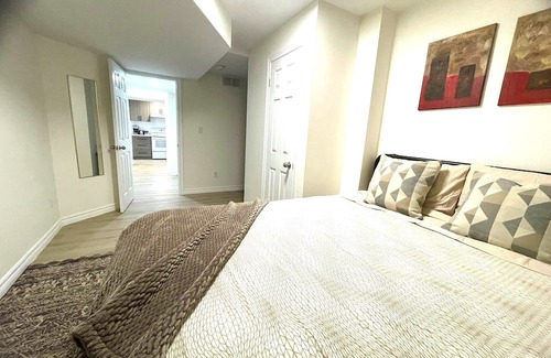 Entire legal basement unit with private entrance & free parking. Modern, clean & spacious unit w/ self check in & check out! Place boasts of bigger windows for bright sunny mornings w/ ready to brew coffee or cozy movie nights w/ Netflix + popcorn! 2BR w/ queen beds, 1BA + kitchen can cater to 4 guests. It's 4 mins from highway 401 with OPG, Darlington Provincial Park, Watson Farms, Bowmanville Harbour & beaches, multiple shopping and dining options at 3-8 mins by car! No smoking/partying/ pets allowed.
