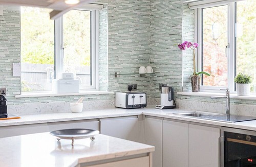 Shower Room: Walk-In Shower, Toilet. Gas central heating (underfloor in kitchen/dining room), gas, electricity, bed linen, towels and Wi-Fi included. Initial logs for wood burner included. Travel cot. Welcome pack. Games room with table football, dartboard, a selection of games and 65" Smart TV. Enclosed, lawned front garden with garden furniture. Large, rear decked area with garden furniture and gas barbecue. Table tennis. Mini putting green (bring own putters and balls). Hot tub for 4 (private). Sauna (private). Private parking for 6+ cars. No smoking. Please note: Sorry, no hen or stag parties. There are 10 steps and an unfenced pond in the garden. This property has a security deposit of £500. . Brackenwood is a distinguished and spacious, six-bedroomed period house with a separate two-bedroom cottage annexe, located on the beautiful Wirral Peninsula. In a prominent elevated position, it borders extensive areas of natural beauty with direct access to the beautiful woodlands of Caldy Hill. Offering far-reaching views, the property is detached and gated with CCTV making it private and secure. Filled with as much history as it has character and charm, it offers flexible and usable accommodation. The main house covers three levels, is beautifully presented, and luxuriously modernised to match the needs of today’s living. Upon entering via the original period front door, the grand entrance hall opens to a spacious sitting room where there’s a Fendi chaise lounge, comfy sofas, Smart TV, parquet flooring and beautiful Persian rugs. Next door is a spacious bedroom with a super kingsize bed and an elegant oak desk. The impressive underfloor heated kitchen/diner is based around a quartz top centre island and is a foodie’s dream. There are three inbuilt fridges (including a bespoke drinks fridge), plus a large larder freezer - perfect for entertaining. The AEG ovens and microwave are at eye level and self-cleaning; there’s a Nespresso coffee machine and an Alexa. The large dining table and soft seating space is flooded with natural light thanks to huge bi-fold doors, and the utility houses a Miele washing machine and tumble dryer. Finally there’s a downstairs toilet.