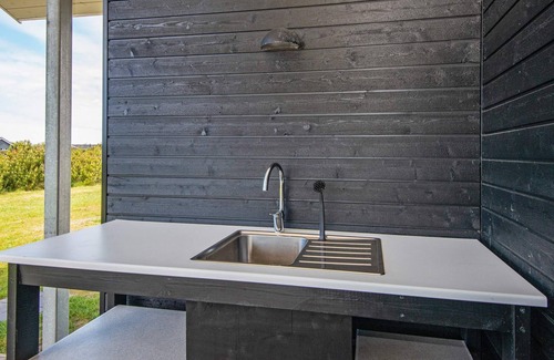 Well-equipped cottage with outdoor shower, outdoor kitchen, whirlpool and infrared sauna located only approx. 700 meters from Ringkøbing Fjord. This spacious and well-appointed cottage with sloping ceilings and with large windows, which provide a nice light, has something to offer the whole family. The heart is the large combined living and dining room, located in open connection with the well-equipped kitchen. From here there is access to the west-facing and partially covered wooden terrace, where you can enjoy the evening sun and gather the family for the evening meal, as possible. can be prepared in the house's outdoor kitchen with grill. The cottage's outdoor kitchen also works perfectly as a fish cleaning area when you return home after a successful fishing trip in one of the nearby fishing spots. On the east-facing terrace it is possible to enjoy the morning sun, while you may. eat your breakfast or take a shower in the outdoor shower. The cottage is i.a. equipped with energy-friendly air / air heat pump, wood stove, washing machine, dryer, dishwasher, fast internet and TV with Danish and German channels. There are electric heating panels in all bedrooms. In addition to the two bathrooms, one of which has a whirlpool and infrared sauna, there are four bedrooms divided into two with double beds while the other two bedrooms are furnished with two single beds in each room. Note that the pictures on the cottage are model pictures, as the house is not yet completely finished. Not for rent to youth groups.