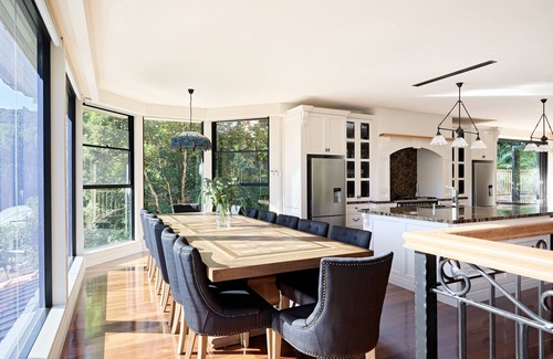 A private stairwell takes you to the master bedroom, where you will find a parents retreat. Featuring a sprawling room with king bed and sitting area, grand bathroom with salon area, and offers the perfect place to blow off steam - using the private spa overlooking the tennis court. Luscious greenery surrounds the entire property with flowing decks to create seamless indoor/outdoor living. This property features in total 8 bedrooms ( including 3 ensuites) set over the 2 dwellings, 6 full bathrooms, 3 powder rooms and 10+ car parking.