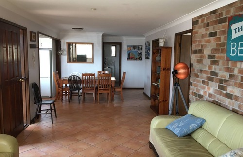 Comfortable open plan 3 bedroom house across the road from beach air conditioning full self contained bbq etc linen and towels NOT supplied great house for family to enjoy, Dalmeny shopping centre 2 minutes walk.Local Club and Brewery 5 minutes drive. Narooma township 10 minutes. Not very good mobile reception in property