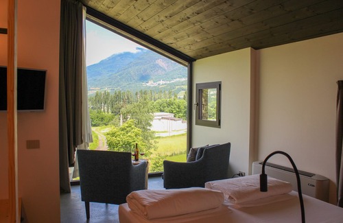 Hotel Agriturismo Caffè e Vino is a stylish hotel with spacious, modern and comfortable rooms for nature lovers and wine connoisseurs who want to explore and relax in this picturesque area. Enjoy the idyllic landscape with its surrounding mountains and vineyards and explore the surrounding area on hiking and cycling trails. The hotel is also the perfect base for activities such as golfing at the Valtellina Golf Club, gliding at Sondrio Airfield or hiking on the Sentiero Valtellina Cycle-Pedestrian Path.