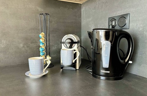 The flat has a cosy bedroom with a double bed, as well as a sofa bed in the living room, which can accommodate up to 4 travellers. Enjoy a modern, fully-equipped kitchen with oven, microwave, dishwasher and coffee machine for your breakfasts. There is also a washing machine, which is handy for longer stays.