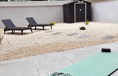 The highlight of the apartment is the terrace and the garden. As described above, it can be accessed via the kitchen or master bedroom. The seating area gives you the perfect opportunity to have a nice dinner outside on the terrace. If you wish to relax during the day, you may want to use the sun beds.
