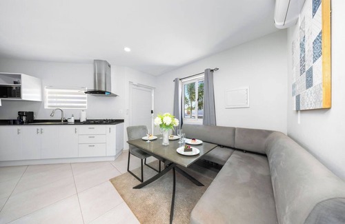 Discover tranquility and modern comfort in this brand-new 2-bedroom suite in the heart of Noord, Aruba. Located just a 5-minute drive from the stunning Palm Beach, this peaceful retreat offers the perfect blend of relaxation, convenience, and luxury. Whether you’re planning a romantic getaway, a family vacation, or a friends’ retreat, this suite has everything you need for an unforgettable stay in paradise.