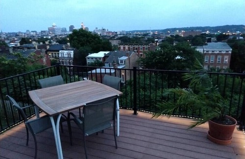 Take in the magnificent views on the 2 decks overlooking downtown Cincinnati! Easily walkable to Findlay Market, Rhinegeist and the Streetcar!