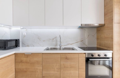 Thoughtfully designed, the bright and open-plan living space exudes sophistication. The bedrooms provide flexible accommodations: one with a queen-size bed, another with a sofa bed, and a third with two single beds—ideal for families or groups. With easy access to local amenities, shops, and public transport, this apartment is the ultimate urban retreat for those seeking both comfort and accessibility.