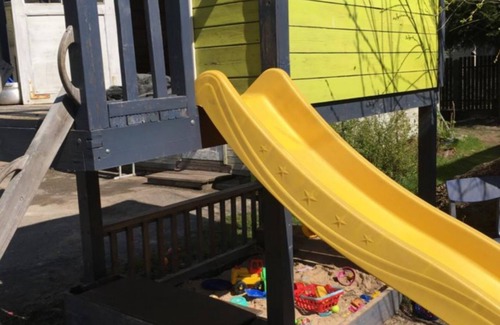 2 -bedroom apartment about 30 sq.m. in Jurmala with all amenities in a historic cottage. Bedroom, dining room , shower and toilet , kitchen into the veranda. Kitchen included: electrical stove, fridge, washing machine, coffe maker, dishes e.t.c. Private place on the wide yard with table, seats and barbecue grill. 500 meters to sea. 2 minutes to bus stop and 10 minutes to train stop. A lot of things for kids on the yard: kids house with slide and sandbox, trampoline, zipline. Yard is fenced. During summer we have kids and another guests in the yard