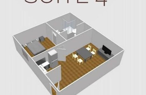 The Apartment with Kitchen 4 faces the inner courtyard thus remaining very quiet and peaceful. Suite 4 consists of two rooms (bedroom and living area) and a bathroom. The bedroom has a king size double bed with memory form mattress and a television, while the living area has a double sofa bed and a second television. The bathroom has both a convenient shower and bidet. The kitchen is complete and equipped with everything you need, and wifi is free throughout....