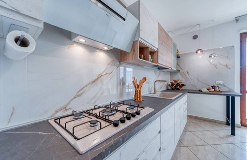 The holiday apartment Dimora Green is located in Aria Sana and is the ideal accommodation for a relaxing getaway. The 115 m² property consists of a living room, a well-equipped kitchen, 2 bedrooms and 2 bathrooms and can therefore accommodate 4 people. Additional amenities include a TV, air conditioning as well as a washing machine. This accommodation does not offer: Wi-Fi. This vacation rental features 2 private balconies for relaxing evenings.