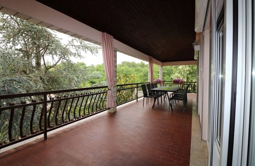 Spend an unforgettable holiday in this spacious, modern furnished holiday apartment in Porec. Spanning 180 m², the apartment offers space for up to nine people and extends over two floors. On the lower level, you will find a bright living room with dining area and access to the 40 m² covered terrace with garden furniture, a fully equipped kitchen, a double room and a bathroom with shower/WC. On the upper floor, three more bedrooms with double beds await you, another bathroom with shower/WC and a cosy lounge in the hallway. The apartment is fully air-conditioned, has Wi-Fi, satellite TV and a dishwasher. Baby cot available upon request.
