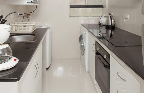 The 2 bedroom apartment is fully furnished, it has a queen size bed on the master bedroom and a double size bed on the second bedroom, one bathroom, a kitchen with all appliances (including washing machine and separate drier), dining area and living room with a 65 TV. Linen and towels are provided.