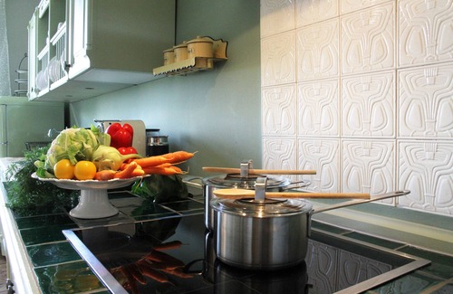 - Nespresso coffee machine, filter coffee machine, kettle, crockery, cutlery, pots, cheese grater, blender, and other cooking accessories. In our storage cans you will find basic ingredients for the first days, all standard spices are also in stock.