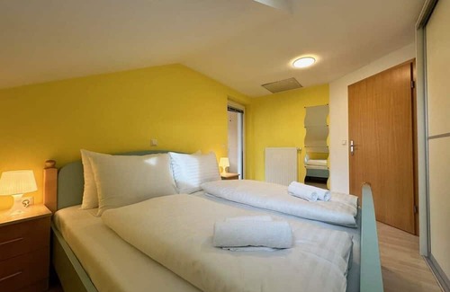 Indulge in the tranquility of our 3-bedroom, 1-bathroom haven located on the second floor of a family house in Snovik, Slovenia. The master bedroom boasts a plush king-size bed, while the two additional bedrooms offer flexibility with comfortable single beds. The open-plan living room is a spacious retreat, featuring an expandable sofa bed for extra guests.