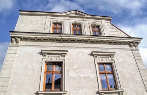 Historical apartment block "Krátká", 2 storeys. In the centre of Broumov, excellent location: right in the centre but still quiet. For shared use: courtyard. Garden furniture, parking on the premises. Shop 150 m, restaurant 100 m, bus stop "Broumov, Soukenická" 350 m, railway station "Broumov" 600 m. Nearby attractions: Klášter Broumov 100 m, Police nad Metují 14 km, Kaple Panny Marie Sněžné (Hvězda) 17 km. Well-known ski regions can easily be reached: Janovičky 9.5 km. Hiking paths: CHKO Broumovsko, Broumovské stěny, Adšpašsko-Teplické skály, Góry Stolowe (PL) 30 km.