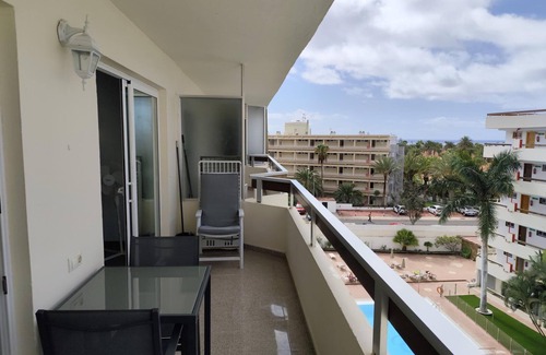 This fully renovated apartment, ideally located on Avenida de Tirajana, offers a comfortable and modern living environment just steps away from the Yumbo shopping center and all amenities. From the moment you arrive, you'll be charmed by its open-plan kitchen, perfectly equipped, which opens onto a bright living area, providing a welcoming space for your meals and moments of relaxation. The bathroom features a contemporary shower, while the bedroom offers a large bed, ensuring restful nights. The spacious terrace is perfect for enjoying the pleasant climate, whether for an outdoor breakfast or evening relaxation. For your comfort, the apartment is equipped with air conditioning, essential during hot summer days. The residence also offers a refreshing swimming pool and a secure parking space. With a private fiber-optic internet connection, this apartment is also perfectly suited for remote work, providing a peaceful and well-equipped environment to balance work and leisure. An ideal place for a stay that combines comfort, convenience, and tranquility.