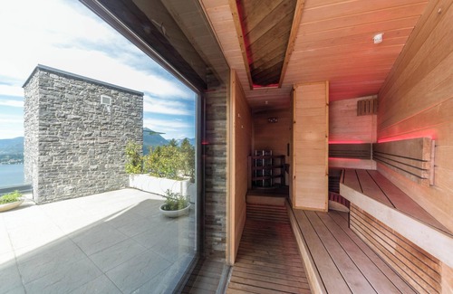 Overlooking the mountains in the town of Perledo, travelers will find the wonderful apartment “Residence Le Terrazze.” The child-friendly apartment spreads across 2 floors and consists of a living room, a well-equipped kitchen with a dishwasher, 2 bedrooms as well as one bathroom and an additional toilet and can therefore accommodate 8 people. A baby cot and a highchair can be added upon request. Additional amenities include Wi-Fi, air conditioning, a fireplace, a television, toys for children, and a washing machine. Start your day sipping a cup of good coffee overlooking the lake on your furnished balcony. Enjoy a grilled meal from your private barbecue on the private terrace, protected from the winds of the mountains by a glass that allows for complete enjoyment of the breathtaking view. This property is the perfect spot for wellness lovers. The shared jacuzzi, also located on the common area of the terrace, invites you to relax with the lake at your feet. The shared sauna is perfect to stimulate your immune system and to complete your beauty routine. The furnished, private garden invites you to enjoy the sun and to loosen up. This property also has a shared indoor climatized pool and a shared gym. The nearest restaurant is located 550 m from this property and can be reached in 10 minutes by foot. The “Bau Bau” beach can be reached in 12 minutes by car (5.5 km). Further restaurants and bars can be reached in 8-14 minutes by car. The closest supermarket is a 5-minute drive from this property. The closest airport, Lugano airport, can be reached in 95 minutes by car (45.3 km).