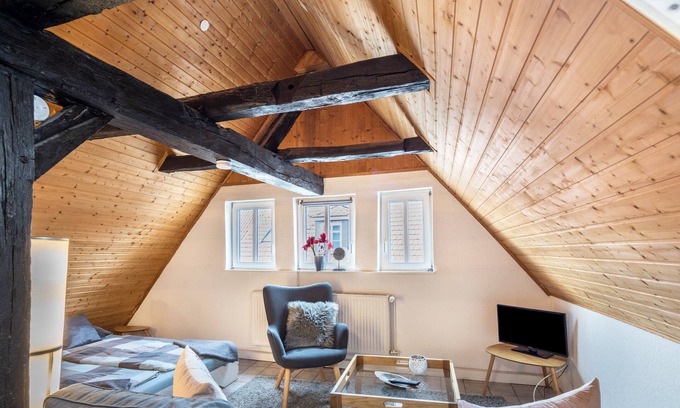 Apartment 'Über Den Dächern Alsfels' with Wi-Fi is located in Alsfeld. Apartment 'Über Den Dächern Alsfels' with Wi-Fi provides accommodation, featuring Bedding/Linens, Wellness Facilities, Fireplace/Heating, among other amenities. This Apartment features Bedding/Linens, Wellness Facilities, Fireplace/Heating, to make your stay a comfortable one.