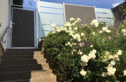 Welcome to the apartment Vogesenblick in Mahlberg. Very nice newly renovated apartment equipped with a new bathroom with corner bath and shower. Very bright, cozy and modern facilities, large sun terrace with sofa and sun loungers overlooking the Vosges and Mahlberg Castle. Separate entrance. The holiday home is located in a very quiet residential area.