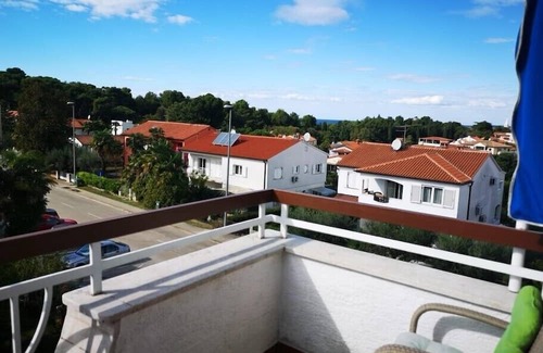 Discover Apartment House Aurora in Poreč, where simplicity meets comfort just 500 meters from Naftaplin Beach and 1000 meters from the city center. Our five cozy apartments offer kitchen utensils, a balcony or terrace, WiFi, air conditioning, and parking. Pats are welcome with an extra charge. Fresh bed linen and towels are provided, ensuring a hassle-free stay. With restaurants, café bars, clubs, and beaches nearby, your perfect vacation awaits. Welcome to your home away from home in Poreč at Apartment House Aurora. Apartment A4 has 2 bedrooms with a double bed, a bathroom with shower, one simple kitchen, and a balcony overlooking the sea and city center.